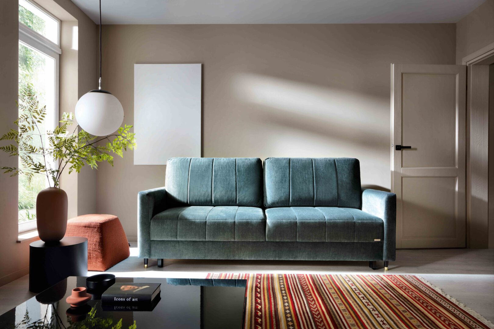 The Havana sofa is a multifunctional piece of furniture that has been designed for maximum comfort, both during the day and at night. Havana stands out above all for its multi functionality, offering a sleeping area of 160 × 200 cm, which is similar to a standard double bed. Double springs are used in the seat to ensure a high level of comfort, and the back cushions have been filled with a resilient foam format. Under the seat there is a practical bedding box for easy storage of additional accessories.