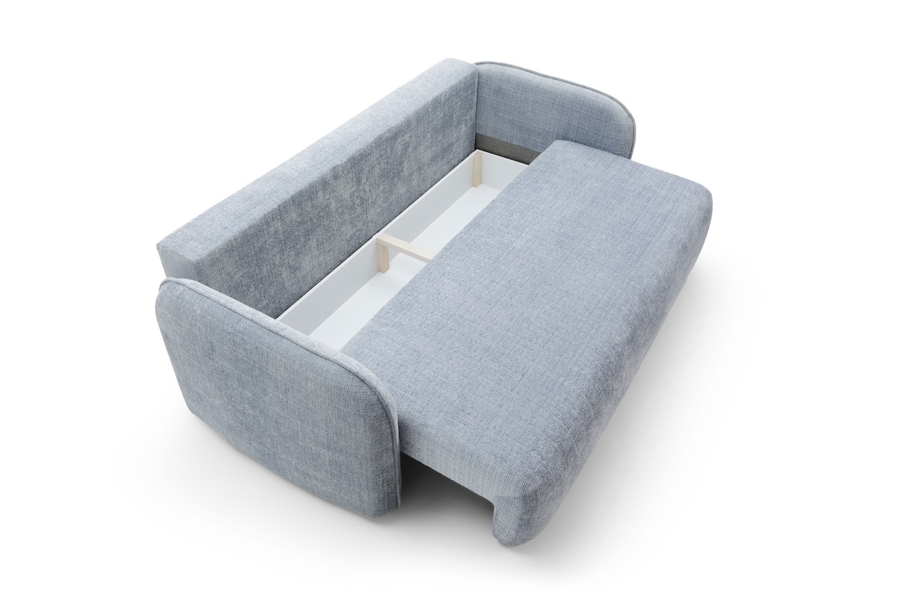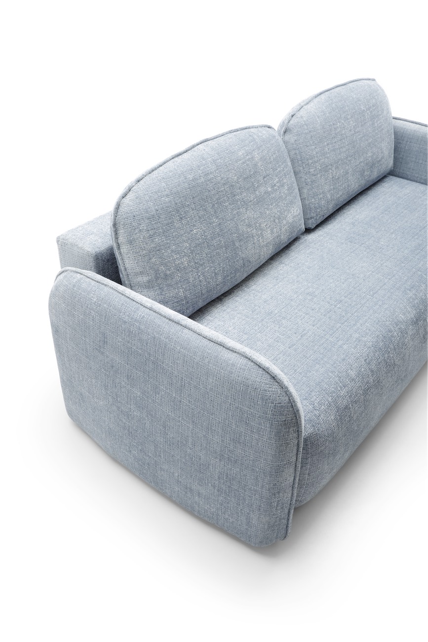The Polaris sofa is an excellent example of minimalist design that perfectly harmonises with the latest interior trends. The rounded backrest cushions, decorated with delicate trimming, give it a subtle charm. The same rounded shapes and trimming are also found on the armrests, creating a harmonious and coherent whole. One of the greatest assets is the double spring arrangement used, ensuring the utmost comfort during use. Additionally, the sleeping function opened with a “DL” type mechanism and a large bedding container make the Polaris sofa not only a fashionable element of the living room decor, but also a practical solution providing a comfortable place to sleep and a place to store bedding.