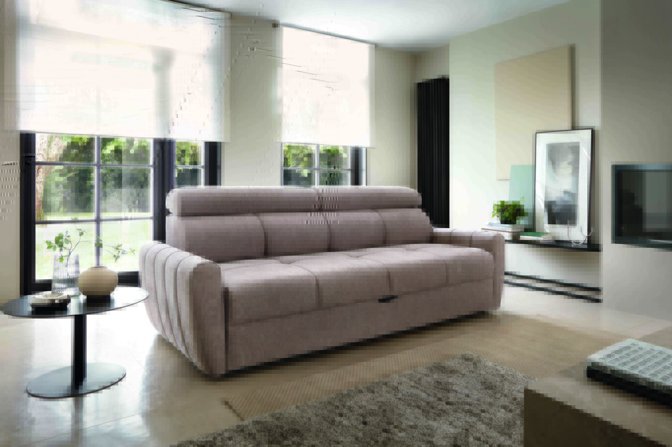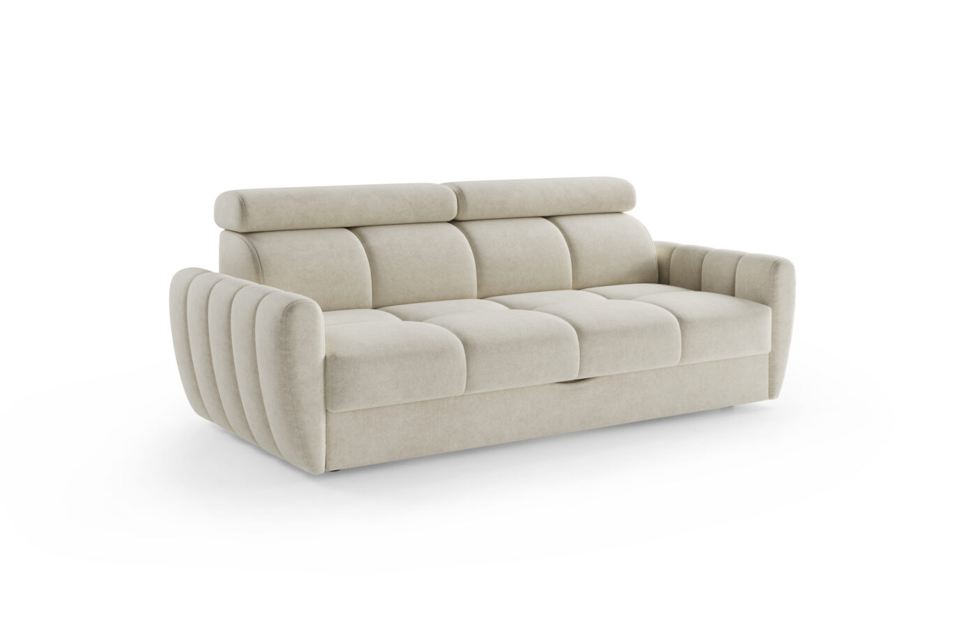 The Lunar sofa is a compact and stylish option, ideal for smaller living spaces. Its ergonomic design includes a rounded backrest that provides comfort and aesthetics at the same time. Stitching on the seat and armrests adds subtle detail to the sofa. One of the practical features of this piece of furniture is its sleeping function, which folds out with a single movement using the ‘puma’ mechanism.